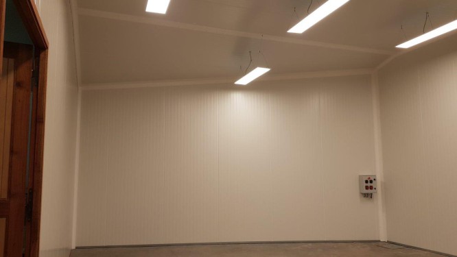 Ce local d’un volume de 260m3est utilisé pour le stockage du vin avant son expédition. Afin de maintenir une température à 14°, pour la conservation du vin, les murs et le plafond ont été doublés avec des panneaux isolants de 80 mm d’épaisseur.